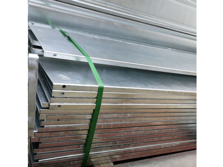 熱鍍鋅電纜橋架:以冷軋鋼板制成,表面工藝為熱鍍鋅,由槽式、托盤(pán)式或梯級(jí)式的直線段、彎通、三通、四通組件以及托臂(臂式支架)、吊架等構(gòu)成具有密接支撐電纜的剛性結(jié)構(gòu)系